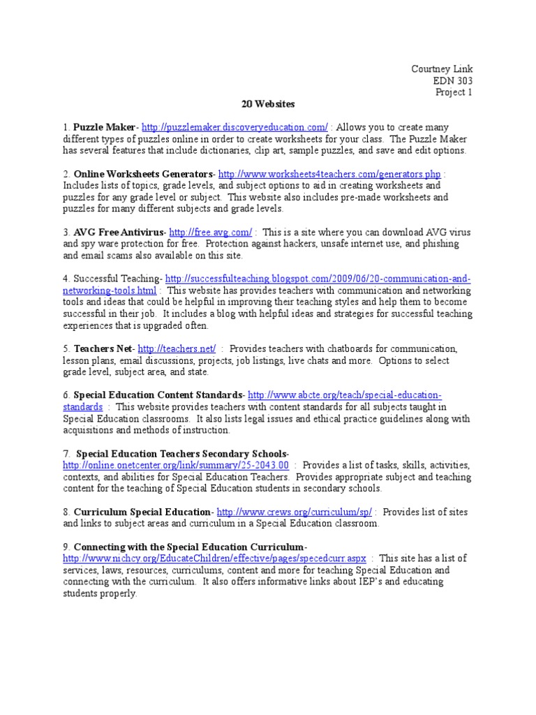20 Websites Special Education Teachers