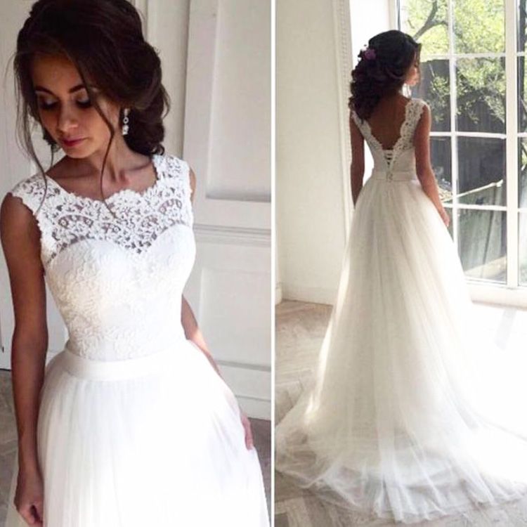 Vestido De Novia Escote En V Con Espalda De Encaje Sencillo Y Encantador Vestidos De Novia Aliexpress