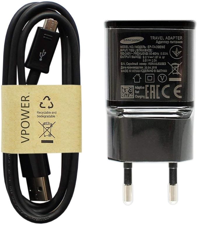 Samsung Cargador Original Cargador Rapido Ep De Ta20ebe Color Negro Incluye Vpower Micro Usb Cable De